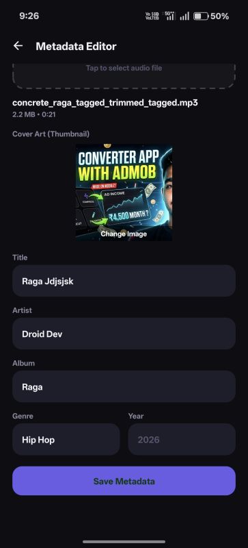 Vidux is a powerful all-in-one media converter app built in Sketchware Pro using FFmpeg. It supports video and audio conversion, compression, trimming, merging, audio replacement, denoise processing with RNNoise, and audio metadata editing.