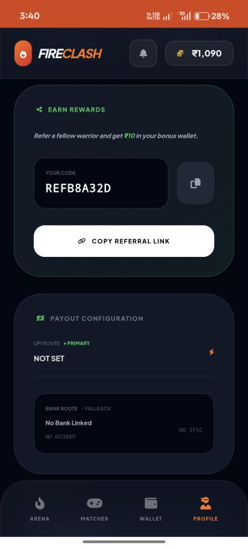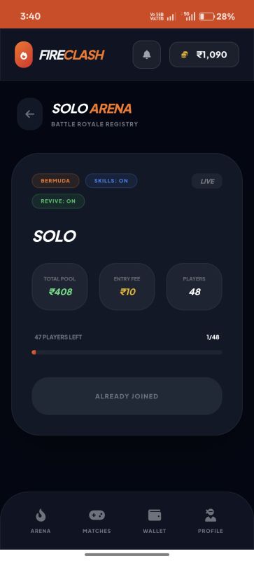 FireClash Pro is a complete esports tournament platform designed for games like Free Fire. This is NOT a source code project. You will receive a fully developed, branded Android app and website under your name, ready to launch and scale.